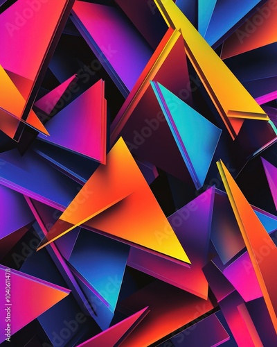Layered triangles in vibrant neon colors with smooth transitions and shadowsSticker