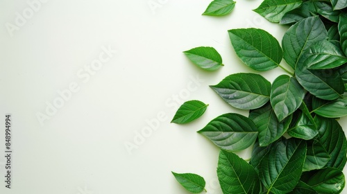 The watermark will not be included on Sticker.: Layout of green leaves with empty white space