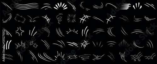 The watermark will not be included on Sticker.: Line movement element design - dynamic motion graphics, abstract swirls, bursts, stars, and curves - p