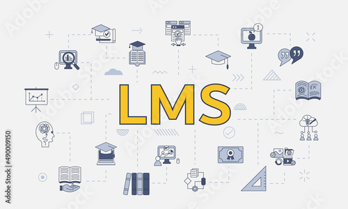 The watermark will not be included on Sticker.: Lms learning management system concept with icon set with big word or text on center