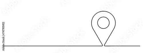 The watermark will not be included on Sticker.: Location pin continuous one line drawing, single map pointer lineart, black line vector illustration