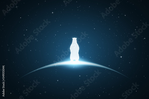 The watermark will not be included on Sticker.: Lonely bear in space - vector conceptual illustration with white silhouette of endangered animal and