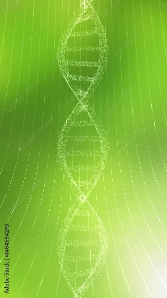 Sticker : Loop sunny green nature bokeh with lines and dna chain rotation vertical background -