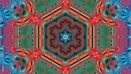 The watermark will not be included on Sticker.: Loopable abstract colorful blue and red fractal kaleidoscope texture background - hypnotic animation