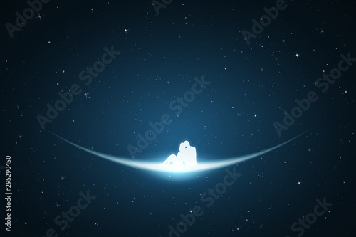 The watermark will not be included on Sticker.: Lovers sitting in space - vector conceptual illustration with white silhouette of loving couple - bue