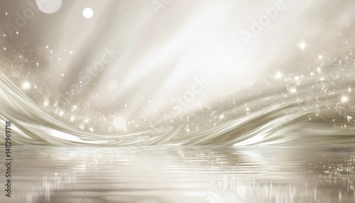 The watermark will not be included on Sticker.: Luxurious pearl wave with glowing bokeh and fluid metallic textures for elegant web design, print ba
