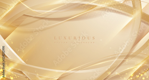 Sticker luxury background with 3d style. elegant light gold shade background with wavy lines.