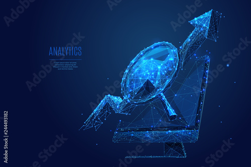 The watermark will not be included on Sticker.: Magnifying arrow up and monitor low poly