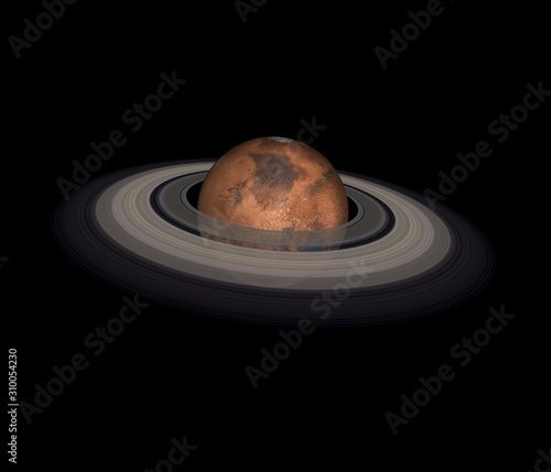 The watermark will not be included on Sticker.: Mars planet of solar system with planetary ring isolated on black background - elements of this image