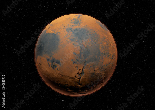 Sticker mars the red planet of the solar system in space. high resolution art presents planet mars.