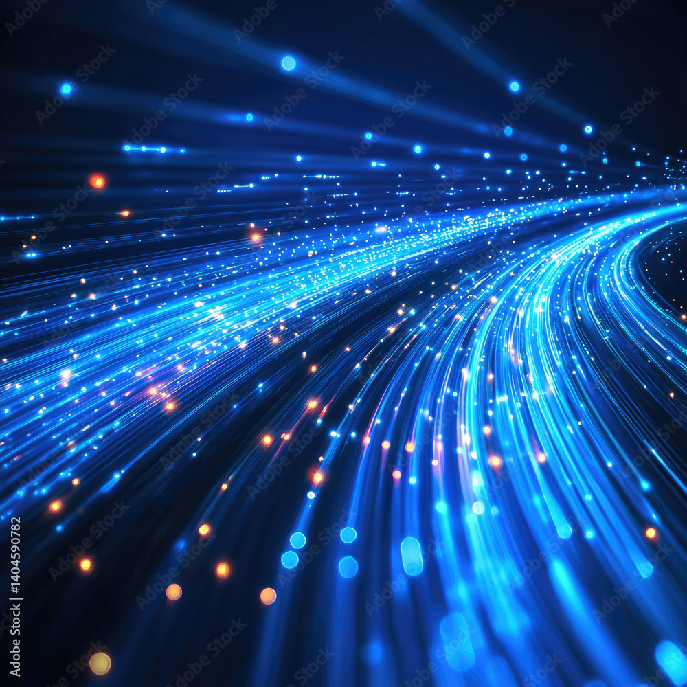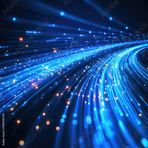 Mesmerizing display of blue light streaks and glowing particles creates dynamic sense of motion and Sticker
