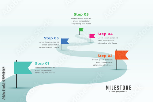 The watermark will not be included on Sticker.: Milestone route map template with modern execution plan