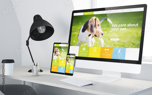 Minimal desktop with responsive veterinarian website on devicesSticker