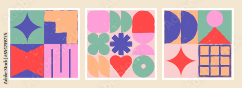 Sticker minimal geometric pattern set with abstract and primitive shapes, bauhaus and mid-century modern ins