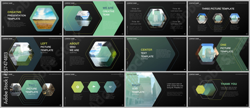 Minimal presentations design, portfolio vector templates with hexagonal design background, hexagon sSticker