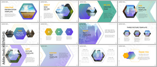 Minimal presentations design, portfolio vector templates with hexagonal design background, hexagon sSticker