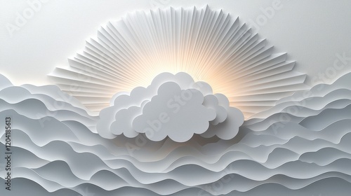 Minimalist paper cutout cloud with delicate rays of light in soft tonesSticker