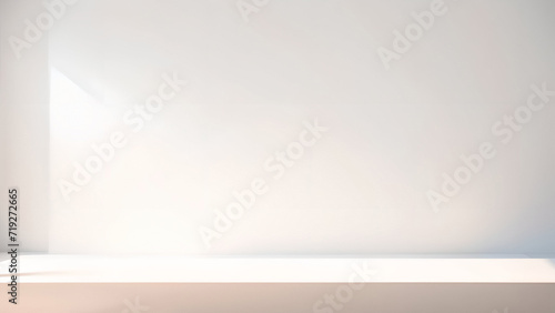 Sticker : Minimalistic simple light pearl background for product presentation - incident light from the window
