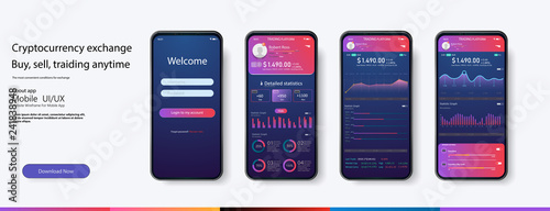 Sticker : Mobile app infographic template with modern design weekly and annual statistics graphs - pie charts,