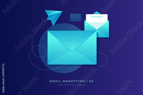 Mobile e-mail notification concept - close and open post envelopes and paper airplane on blue backgroSticker