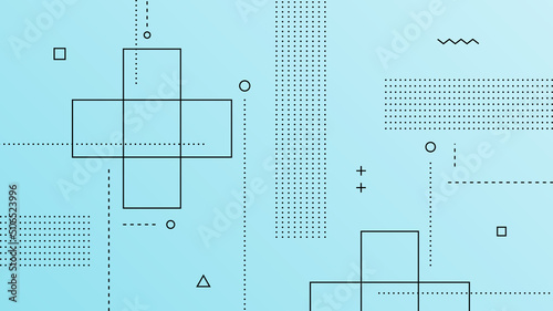 Sticker : Modern abstract background with retro memphis elements and light blue gradient color