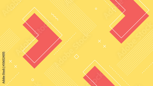 Sticker : Modern abstract background with retro memphis elements and pastel red pink yellow color