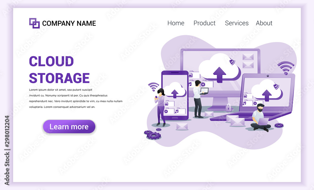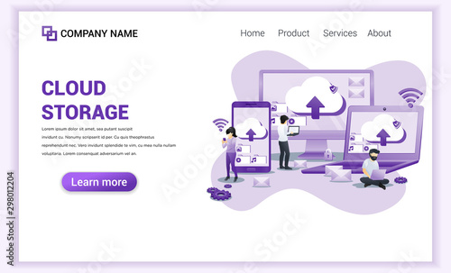 Sticker : Modern flat design concept of cloud computing, cloud storage, data center with characters on giant d