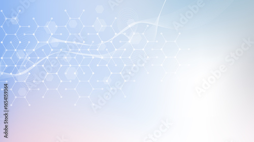 Modern scientific background with hexagons, lines and dots - wave flow abstract background - molecularSticker
