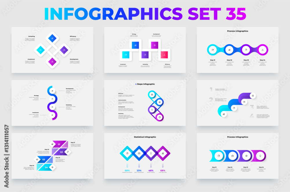 Sticker : Modern set of colorful infographics for business processes and data representation