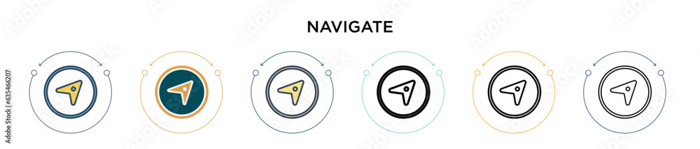 Navigate icon in filled, thin line, outline and stroke style - vector illustration of two colored andSticker