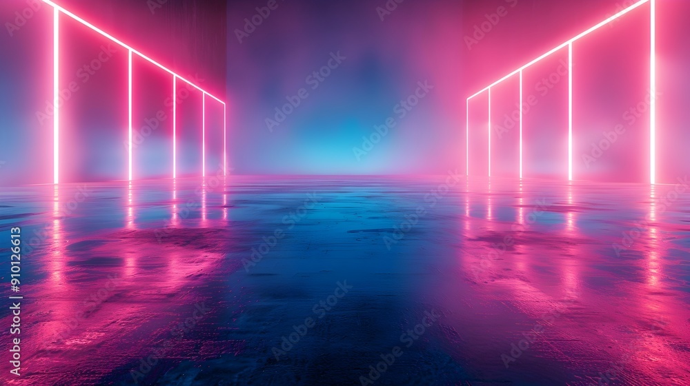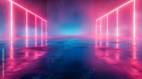 The watermark will not be included on Sticker.: Neon blue and pink gradient with dynamic light streaks empty neon background for product concept dis