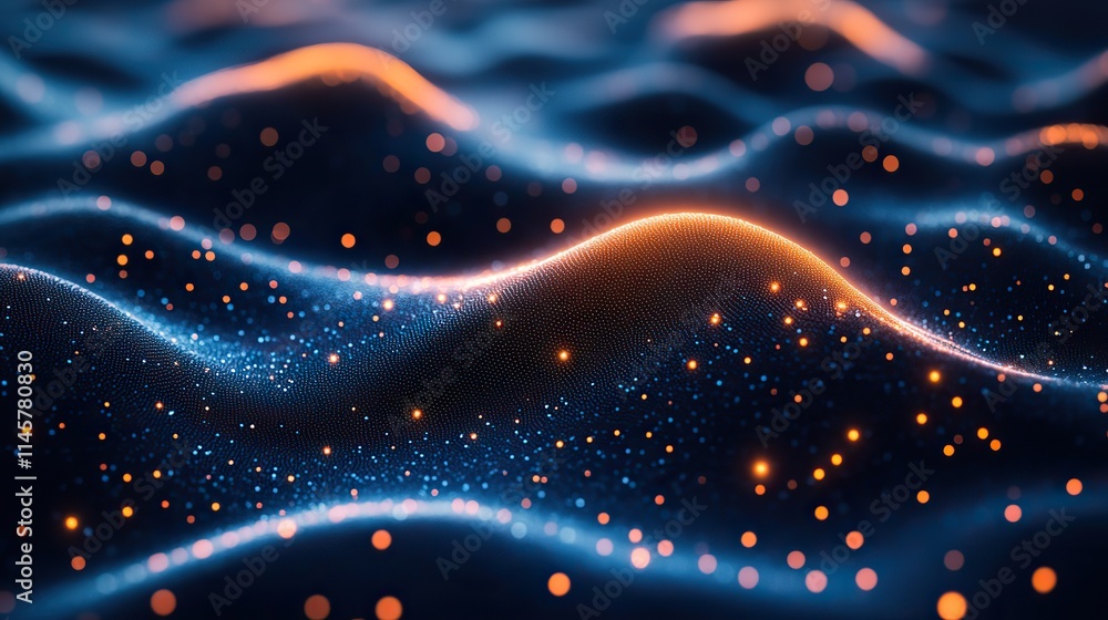 The watermark will not be included on Sticker.: Network connection and abstract 3d background with wave technology - internet structure, telecommunic