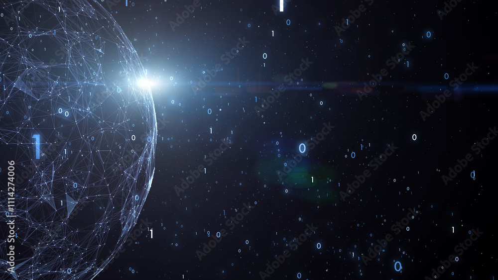 Sticker : Network sphere with shiny star light - artistic artificial intelligence globe in digital cyberspace i