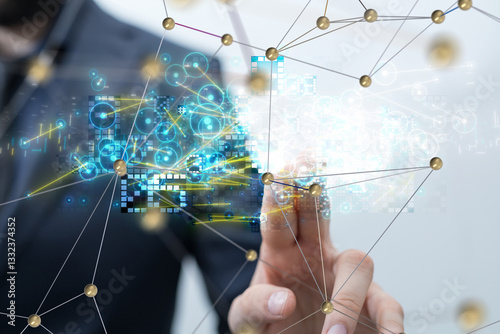 Sticker : Neural network 3d illustration - big data and cybersecurity