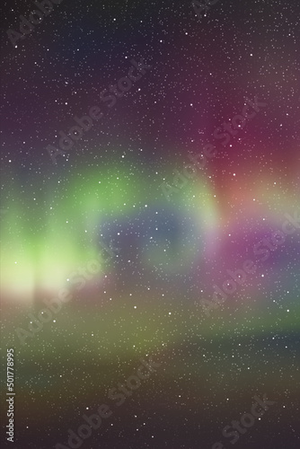 Sticker night starry sky and northern lights. purple green aurora borealis