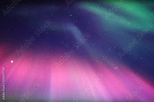Sticker : Night starry sky - northern lights - purple green aurora borealis