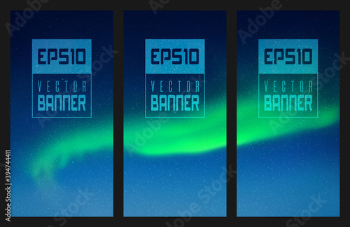 The watermark will not be included on Sticker.: Northern lights - green aurora borealis - abstract vector banner set