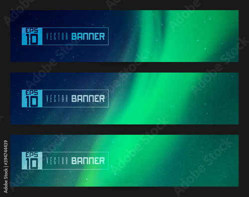 The watermark will not be included on Sticker.: Northern lights - green aurora borealis - abstract vector banner set