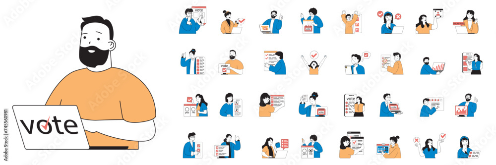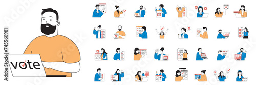 The watermark will not be included on Sticker.: Online voting concept with character situations mega set in flat web design - bundle of scenes people