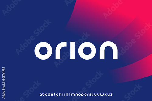 Sticker : Orion, abstract technology science alphabet lowercase font - digital space typography vector illustra