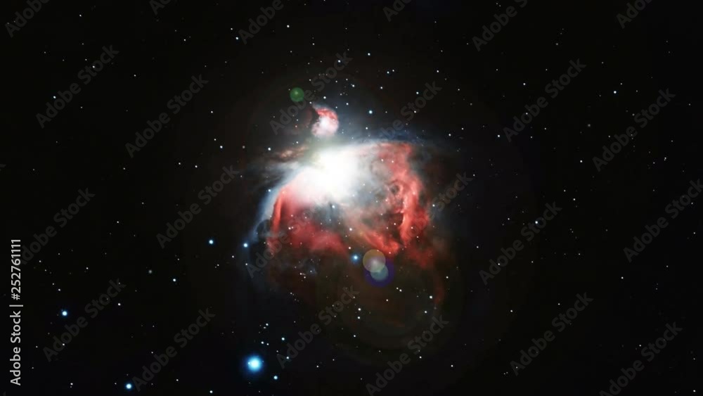 The watermark will not be included on Sticker.: Orion nebula galaxy rotating with flying stars and cluster burst cosmic background animation - contai
