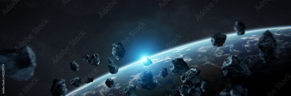 Panoramic space planets background - panorama of distant solar system with exoplanets 3d rendering elSticker