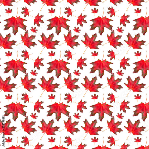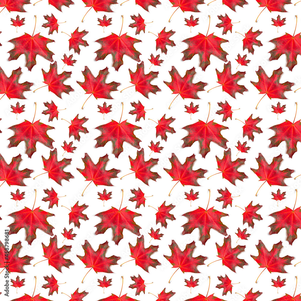 Sticker : Pattern red maple leaf in autumn on a white background - beautiful autumn background for your design -