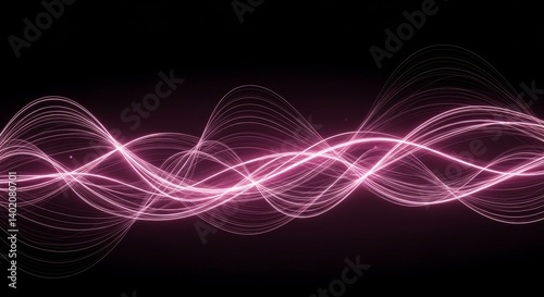 Sticker pink abstract wave background - abstract background featuring flowing pink waves on a black backgrou