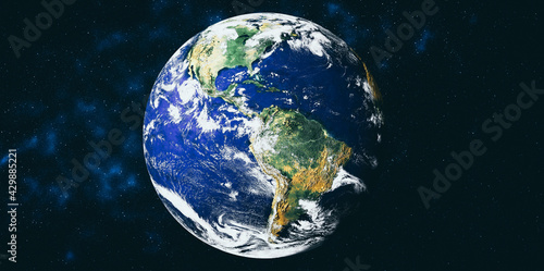 Sticker : Planet earth globe view from space showing realistic earth surface and world map as in outer space p