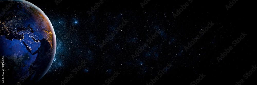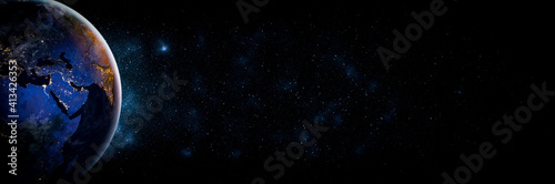 Sticker : Planet earth globe view from space showing realistic earth surface and world map as in outer space p