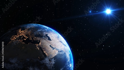 Planet earth with realistic geography surface and orbital 3d cloud atmosphere - outer space view of Sticker