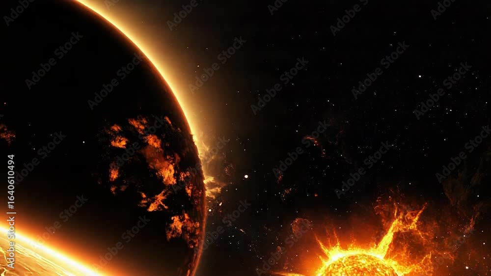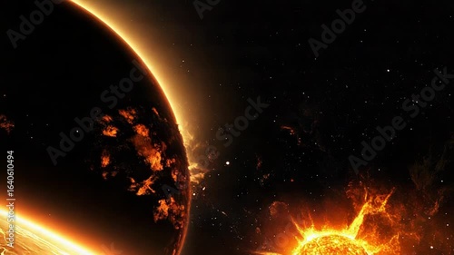 The watermark will not be included on Sticker.: Planet exploding near a dying star in space with solar flares