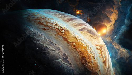 The watermark will not be included on Sticker.: Planet similar to jupiter in space - space wallpaper - generative ai