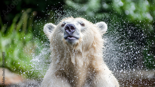 Polar bear shaking off water droplets after a refreshing swim, creating a dynamic splash effectSticker